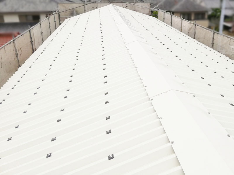 使用材料には、セキノ興産のガルバリウム鋼板屋根材「エバールーフ」を採用しました。